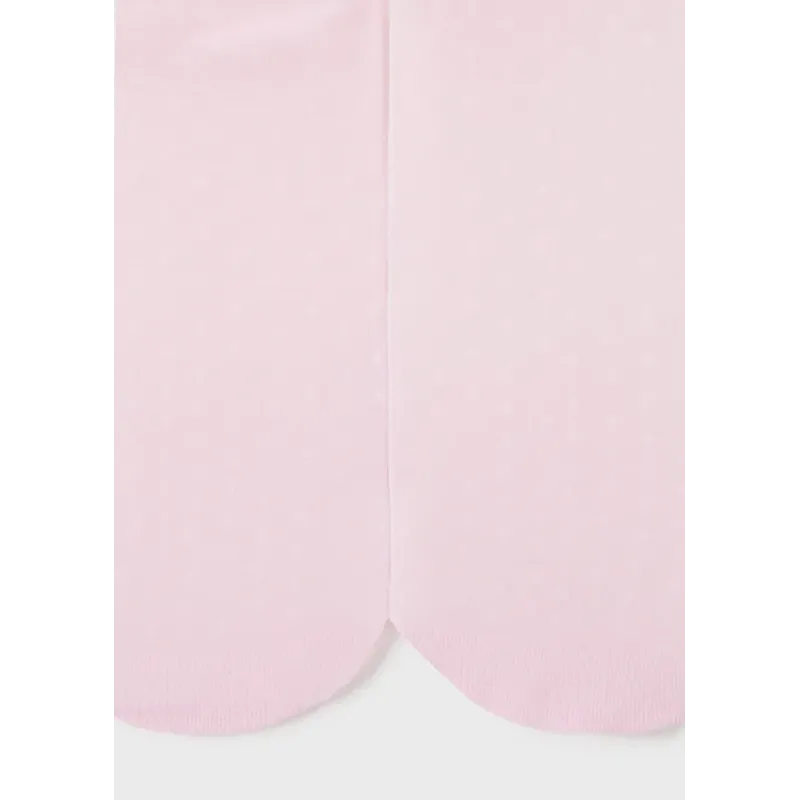 Rajstopy dla niemowlęcia z elastycznym pasem. Ten rodzaj rajstop jest niezbędnym i wygodnym dodatkiem o wszechstronnym użyciu. Ozdoby: ozdobne falbanki.