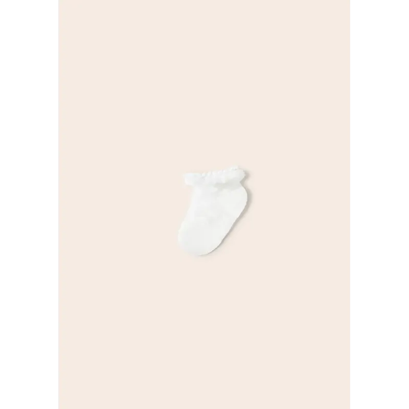 Półtransparentne skarpetki dla dziewczynki. Idealny dodatek dopełniający stylizację, nadający jej charakteru. Ozdoby: ozdobna falbana. Skład: 44% Poliamid 37% Bawełna 17% Poliester 2% Elastan