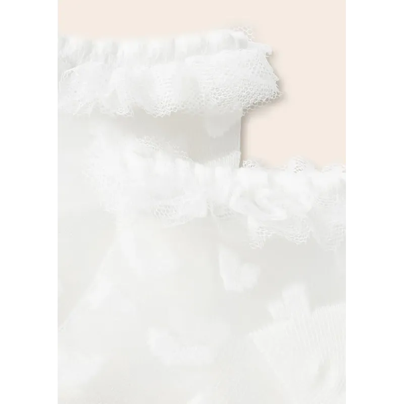 Ażurowe skarpetki dla dziewczynki. Skład: 70% Bawełna, 28% Poliamid, 2% Elastan.