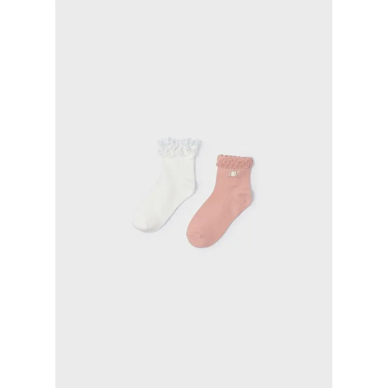 Zestaw dwóch par eleganckich skarpetek dla dziewczynki. Skład: 74% Bawełna, 23% Poliamid, 3% Elastan.