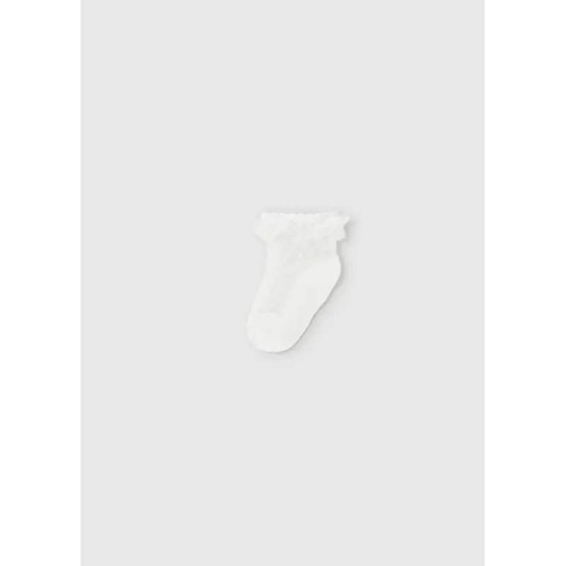 Ażurowe skarpetki dla dziewczynki. Skład: 70% Bawełna, 28% Poliamid, 2% Elastan.
