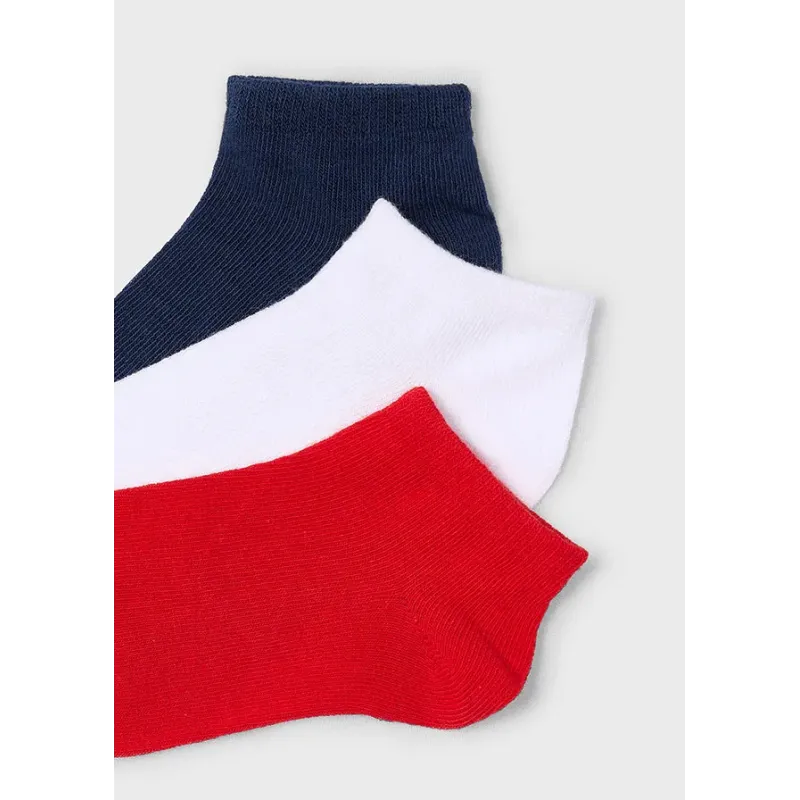 Trzy pary gładkich skarpetek dla chłopca. Skład: 72% Bawełna, 25% Poliamid, 3% Elastan.