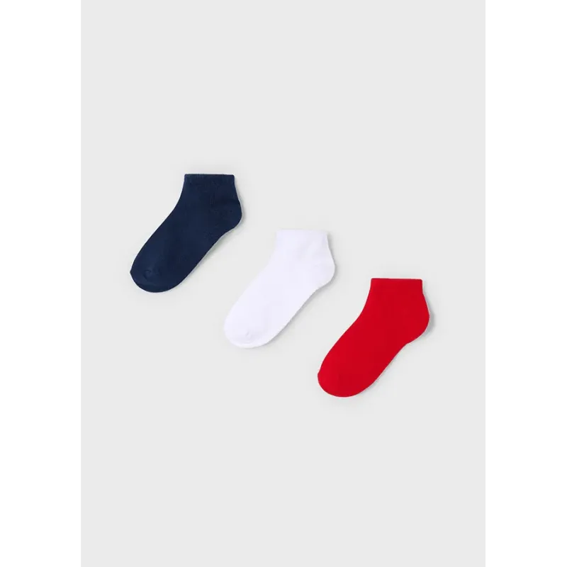 Zestaw trzech par skarpetek przed kostkę dla chłopca Baby. Model gładki.