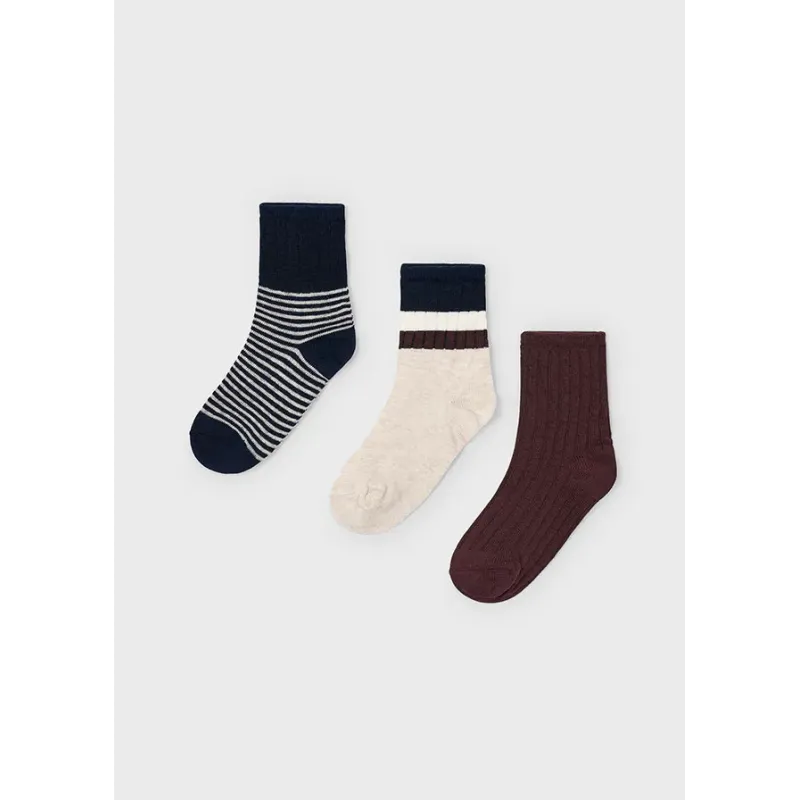 Zestaw trzech par skarpetek dla chłopca. Skład: 72% Bawełna, 25% Poliamid, 3% Elastan.