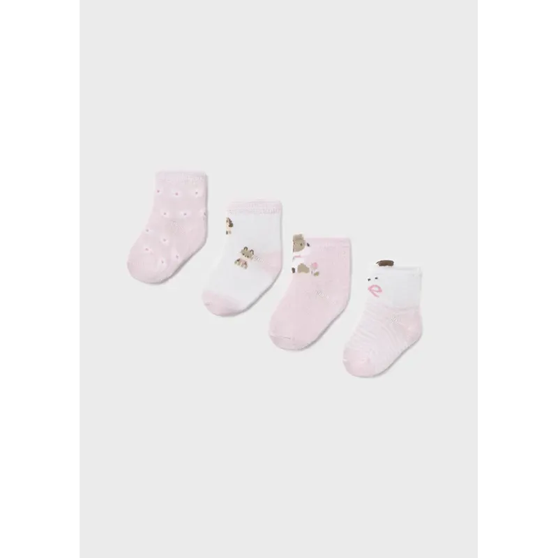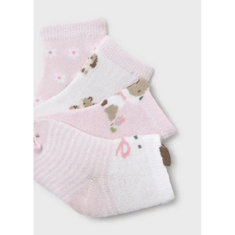 Zestaw czterech par skarpetek dla dziewczynki. Skład: 65% Bawełna, 32% Poliamid, 3% Elastan.