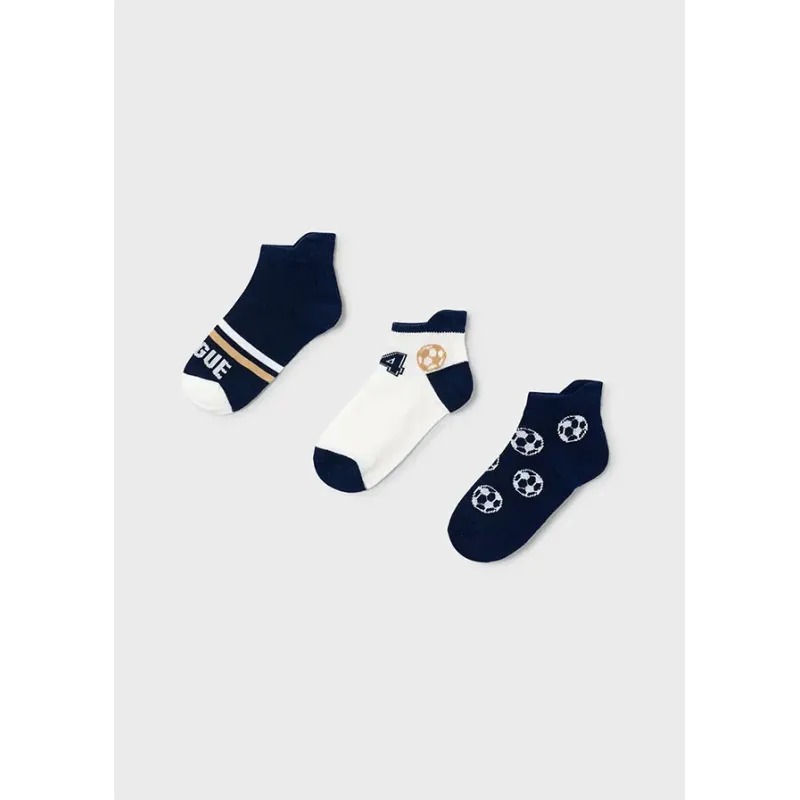 Zestaw trzech par skarpetek dla chłopca. Skład: 72% Bawełna, 25% Poliamid, 3% Elastan.