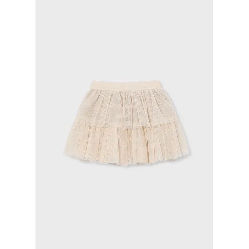 Krótka spódniczka dla dziewczynki. Elastyczna gumka w pasie dla lepszego dopasowania. Model plisowany z dwiema warstwami tiulu. Połyskujący materiał. Skład: 50% Poliester, 32% Poliamid, 10% Włókno metaliczne, 8% Elastan.