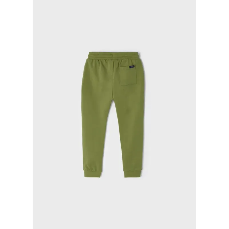 Długie spodnie typu jogger dla chłopca, luźniejsze w górnej części i zwężane ku dołowi. Idealne do sportowych stylizacji, które odzwierciedlają modę uliczną. Elastyczny pas ze sznurkiem do regulacji. Wzmocnione kolana.