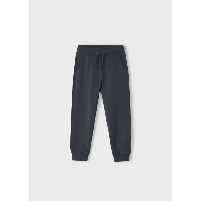 Długie spodnie typu jogger dla chłopca, luźniejsze w górnej części i zwężane ku dołowi. Elastyczny pas ze sznurkiem do regulacji. Kieszenie z przodu i z tyłu. Wnętrze spodni pokryta ciepłym meszkiem. Skład: 60% Bawełna, 39% Poliester, 1% Elastan.