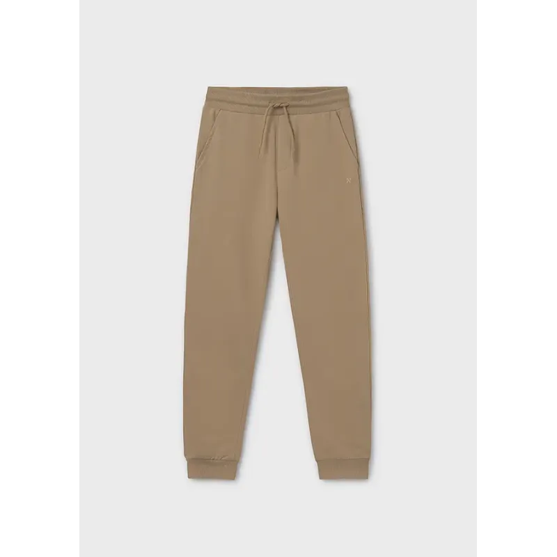 Długie spodnie typu jogger dla chłopca, luźniejsze w górnej części i zwężane ku dołowi. Idealne do sportowych stylizacji, które odzwierciedlają modę uliczną. Elastyczny pas ze sznurkiem do regulacji. Wzmocnione kolana.