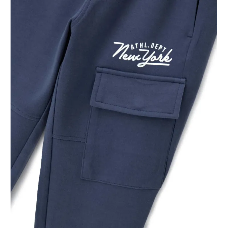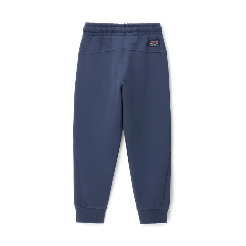 Długie spodnie typu jogger dla chłopca, luźniejsze w górnej części i zwężane ku dołowi. Elastyczny pas ze sznurkiem do regulacji. Wnętrze spodnie wykończone ciepłym meszkiem. Skład:58% Bawełna, 38% Poliester, 4% Elastan.