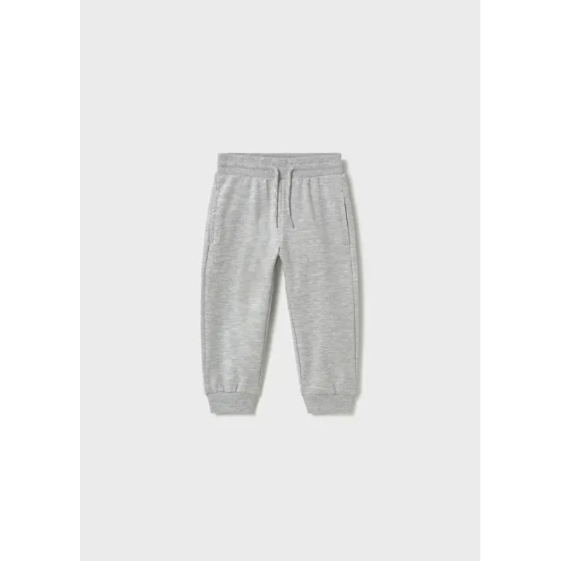 Długie spodnie typu jogger dla chłopca, luźniejsze w górnej części i zwężane ku dołowi. Elastyczny pas ze sznurkiem do regulacji. Kieszenie z przodu i z tyłu. Wnętrze spodni pokryta ciepłym meszkiem. Skład: 60% Bawełna, 39% Poliester, 1% Elastan.