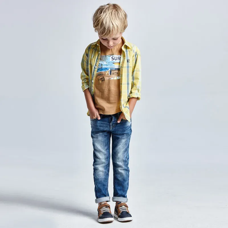Spodnie jeansowe regular fit z bawełny zrównoważonej dla chłopca. Jeansowa tkanina z efektem sprania, doskonała do codziennych stylizacji. Funkcjonalne kieszenie zarówno z przodu jak i z tyłu ubranka. Mniejsze rozmiary 2-5 lat posiadają imitację rozporka.