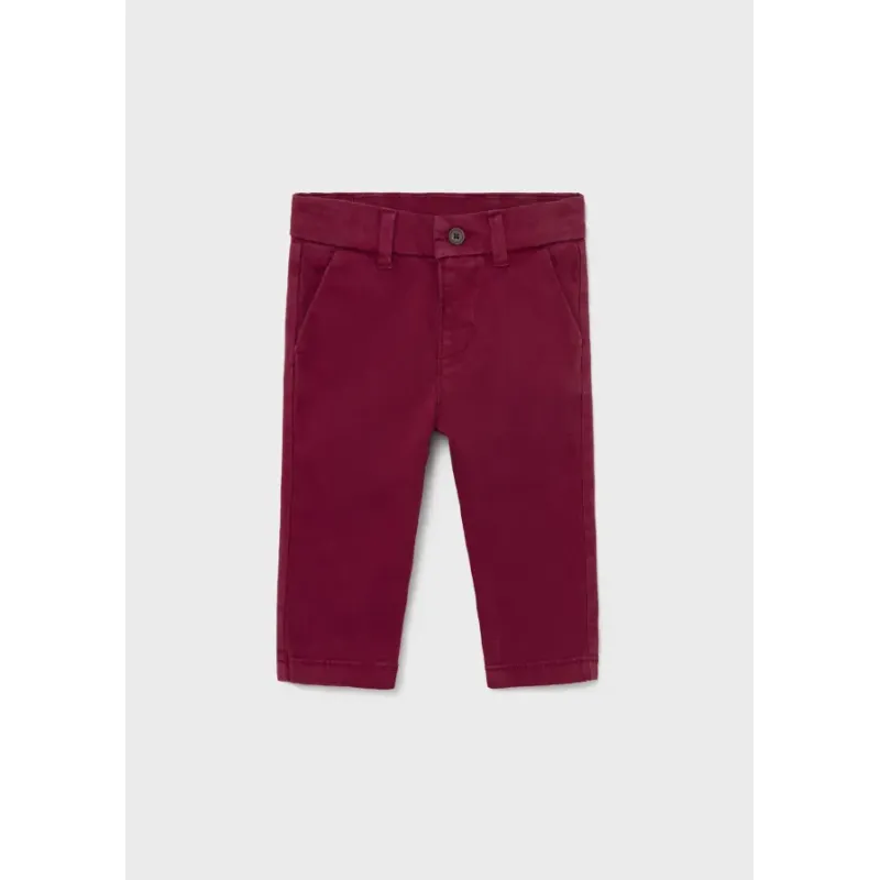 Spodnie dla chłopca o kroju dopasowanym, należące do naszej linii, która doskonale dopasowuje się do sylwetki. Wykonane z dodatkiem bawełny organicznej. Pas z regulowaną gumą i zapięciem na suwak i guzik. Skład: 98% Bawełna, 2% Elastan.