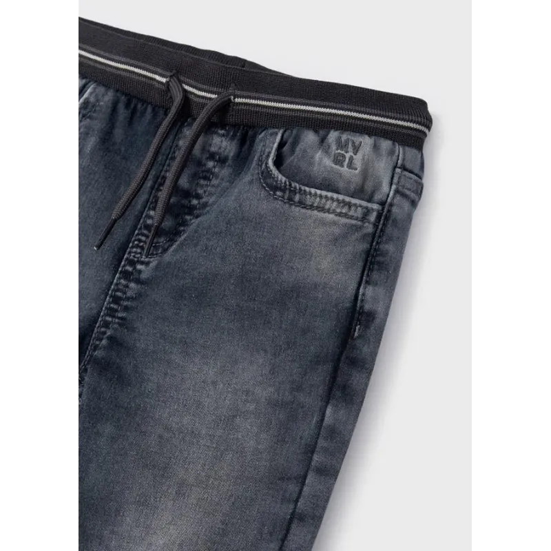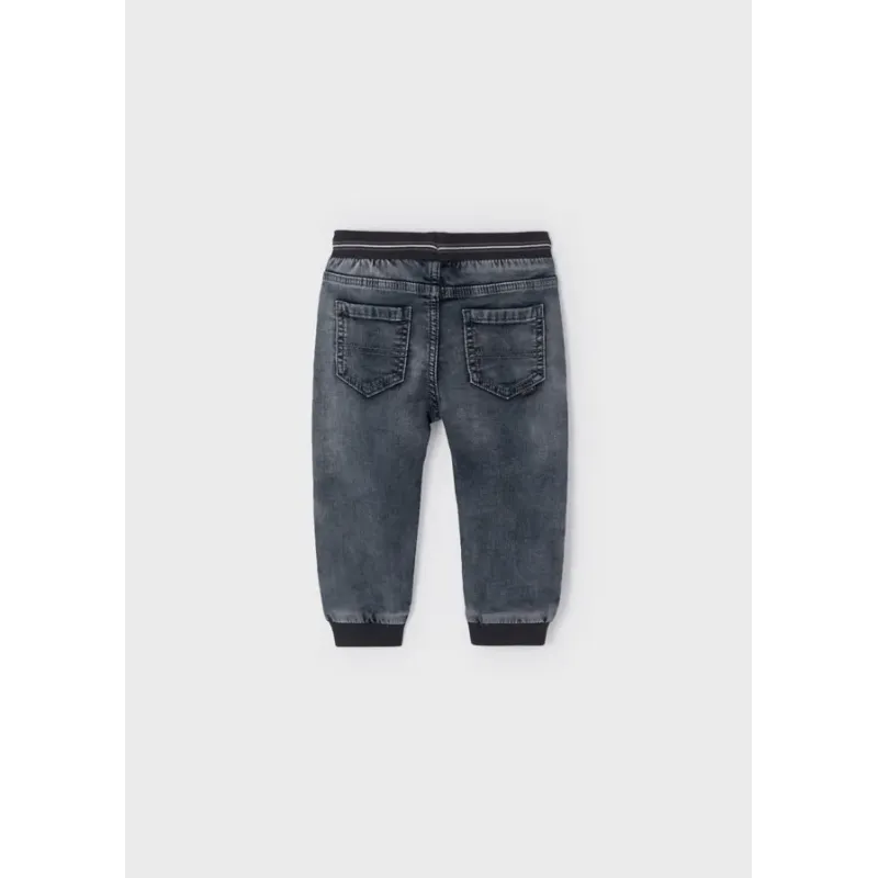 Spodnie jeansowe z kieszeniami dla chłopca. Ekastyczna gumka w pasie. Imitacja rozporka. Duże kieszenie na boku nogawki. Miękka i elastyczna tkanina. Skład: 69% Bawełna, 29% Poliester, 2% Elastan.