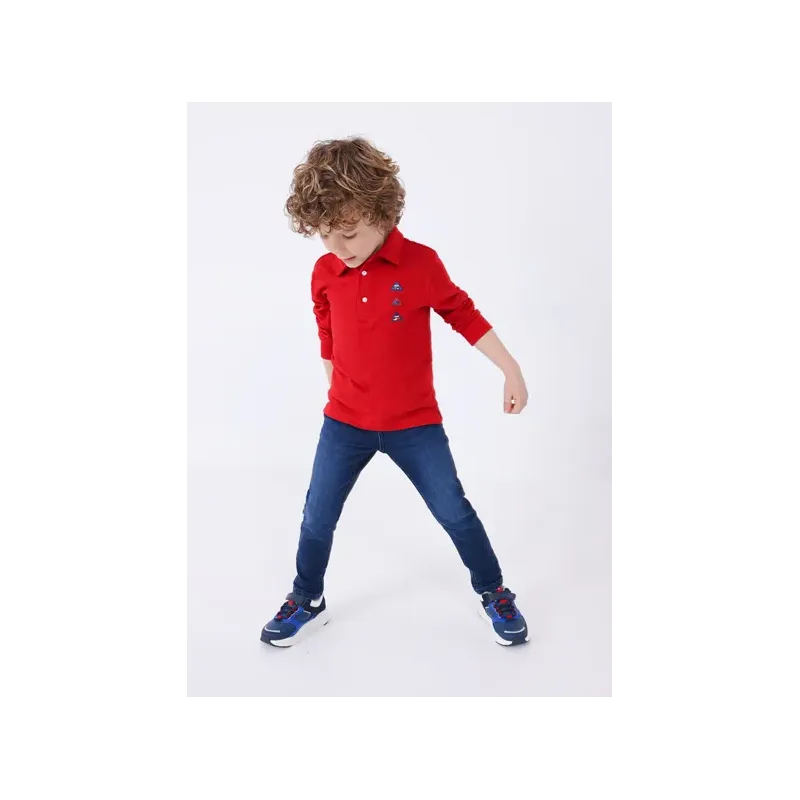 Spodnie typu chinos dla chłopca o bardziej dopasowanych nogawkach, służących podkreśleniu sylwetki przy jednoczesnym zachowaniu elegancji. Pas z regulowaną gumką i zapięciem na guzik. Delikatna i elastyczna bawełna. Skład: 98% Bawełna, 2% Elastan.