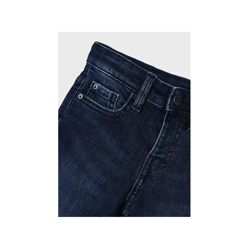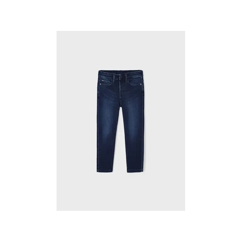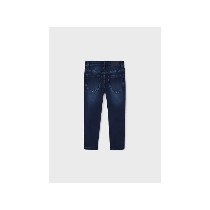 Spodnie jeansowe jogger z kieszeniami dla chłopaka. Ekastyczna gumka w pasie ze sznurkiem do regulacji. Skład: 74% Bawełna, 25% Poliester, 1% Elastan.