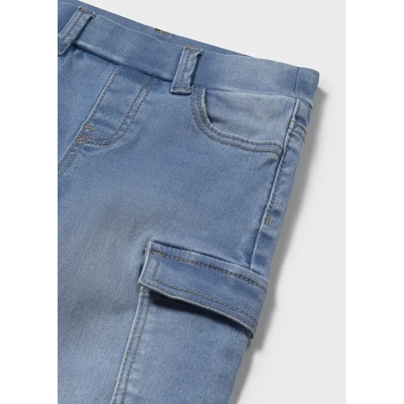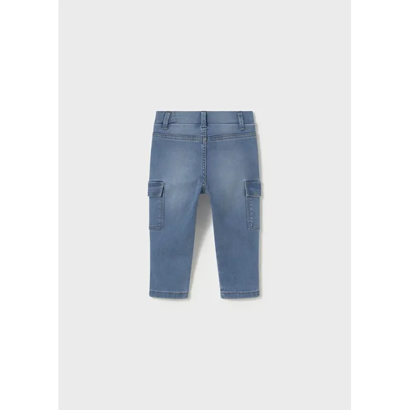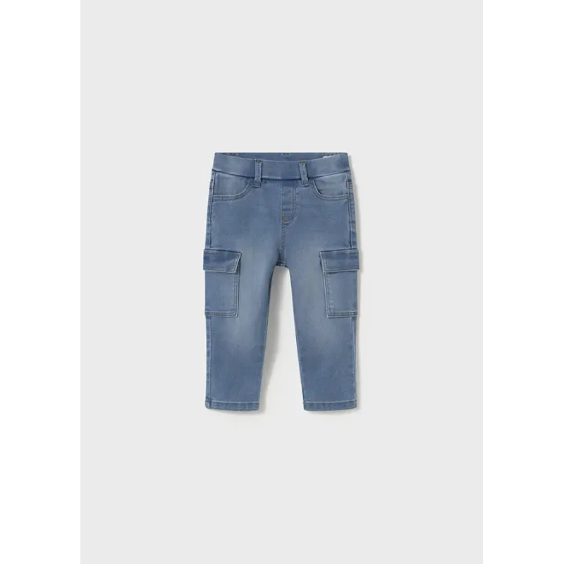 Spodnie jeansowe z kieszeniami dla chłopca. Ekastyczna gumka w pasie. Imitacja rozporka. Duże kieszenie na boku nogawki. Miękka i elastyczna tkanina. Skład: 69% Bawełna, 29% Poliester, 2% Elastan.