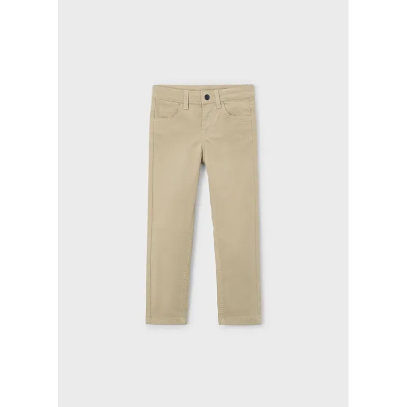 Długie spodnie jeansowe dla niemowlęcia chłopca o dopasowanym kroju (slim fit). Zapięcie z przodu na zatrzask. Regulowana gumka w pasie. Miękka i elastyczna tkanina z efektem sprania. Skład: 67% Bawełna, 32% Poliester, 1% Elastan.