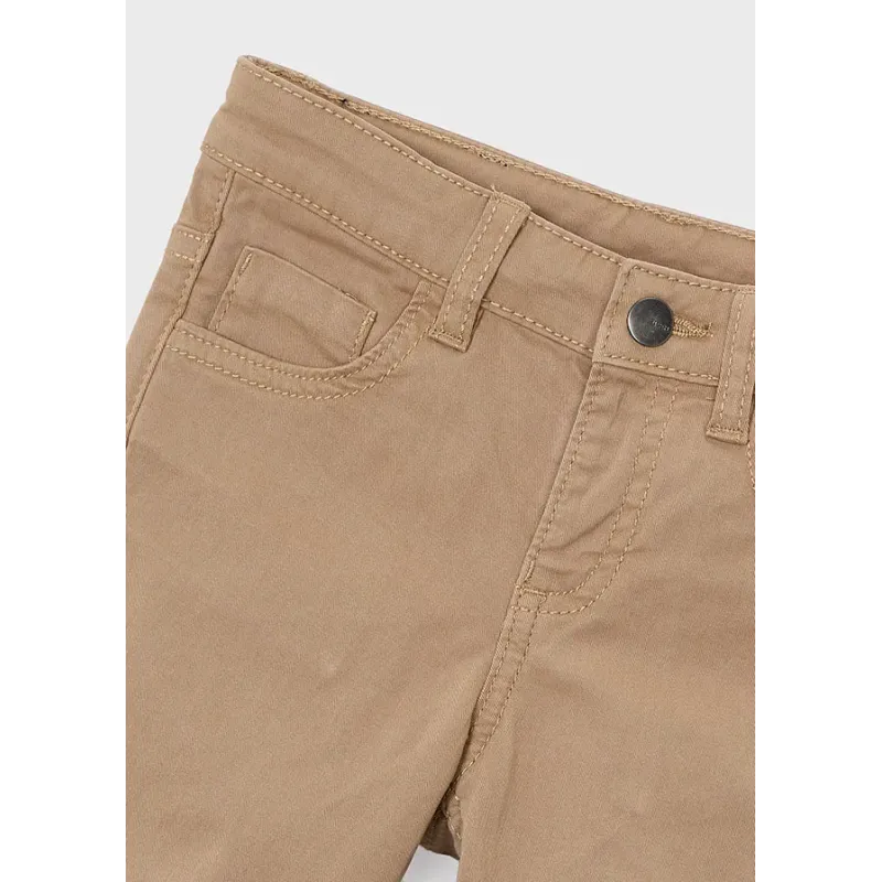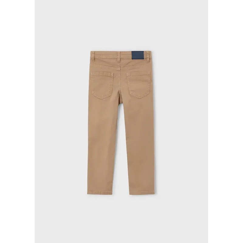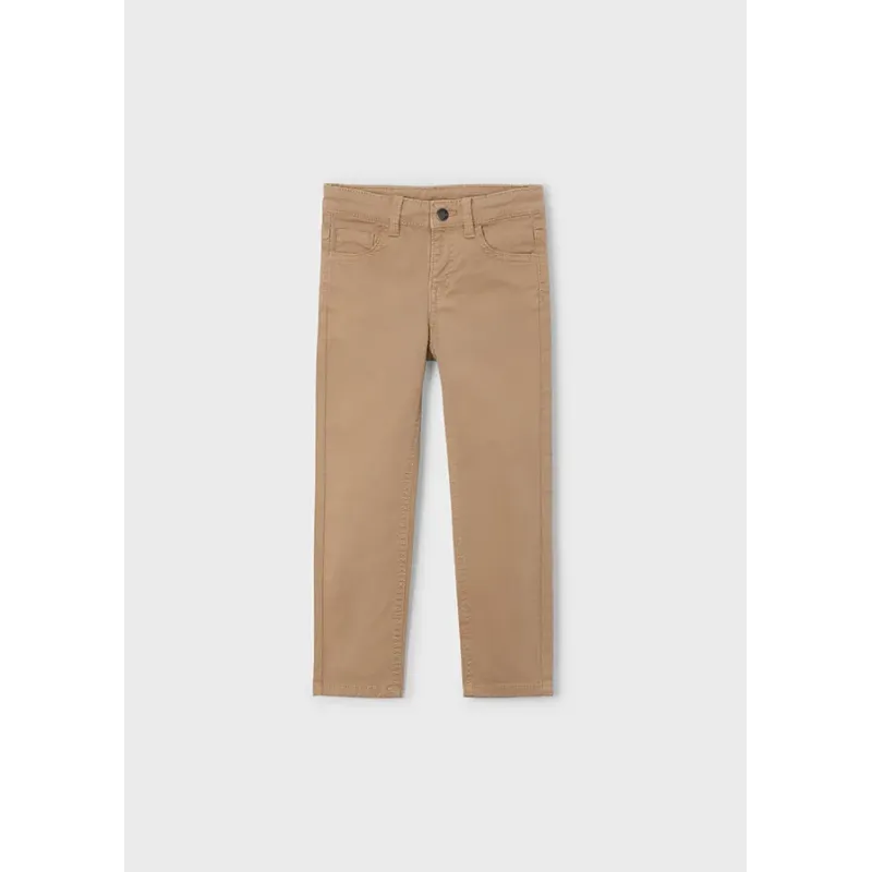 Spodnie dla chłopca o kroju dopasowanym, należące do naszej linii, która doskonale dopasowuje się do sylwetki. Wykonane z dodatkiem bawełny organicznej. Pas z regulowaną gumą i zapięciem na suwak i guzik. Skład: 98% Bawełna, 2% Elastan.
