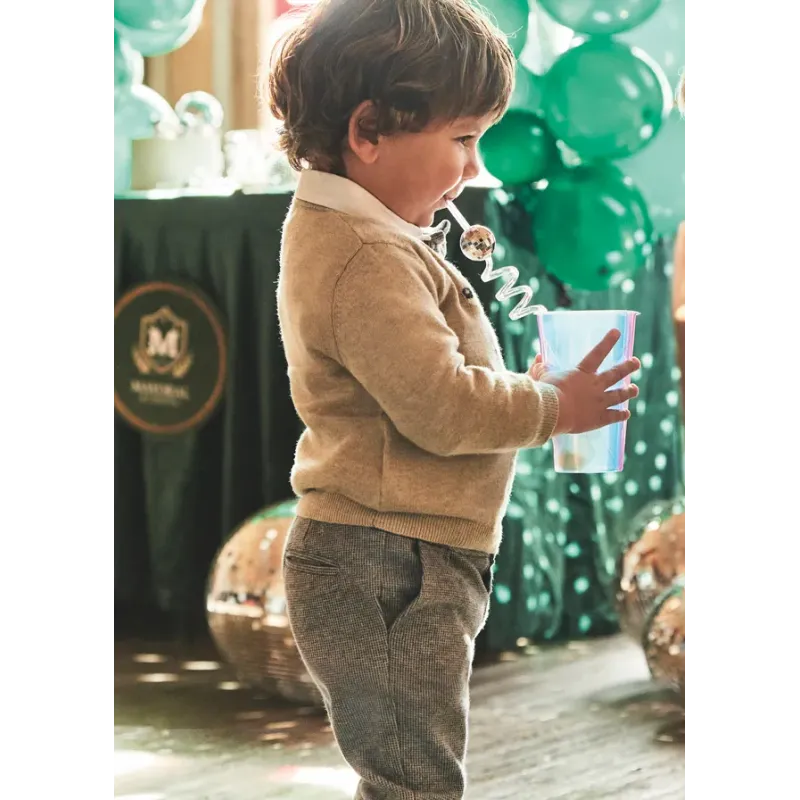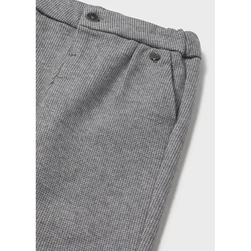 Spodnie z eleganckiej linii dla chłopca, dzięki którym uzyskasz wyjątkowy wygląd. Model typu chinos. Elastyczna gumka w pasie dla lepszego dopasowania. Materiał w pepitkę. Skład: 51% Bawełna, 49% Poliester.