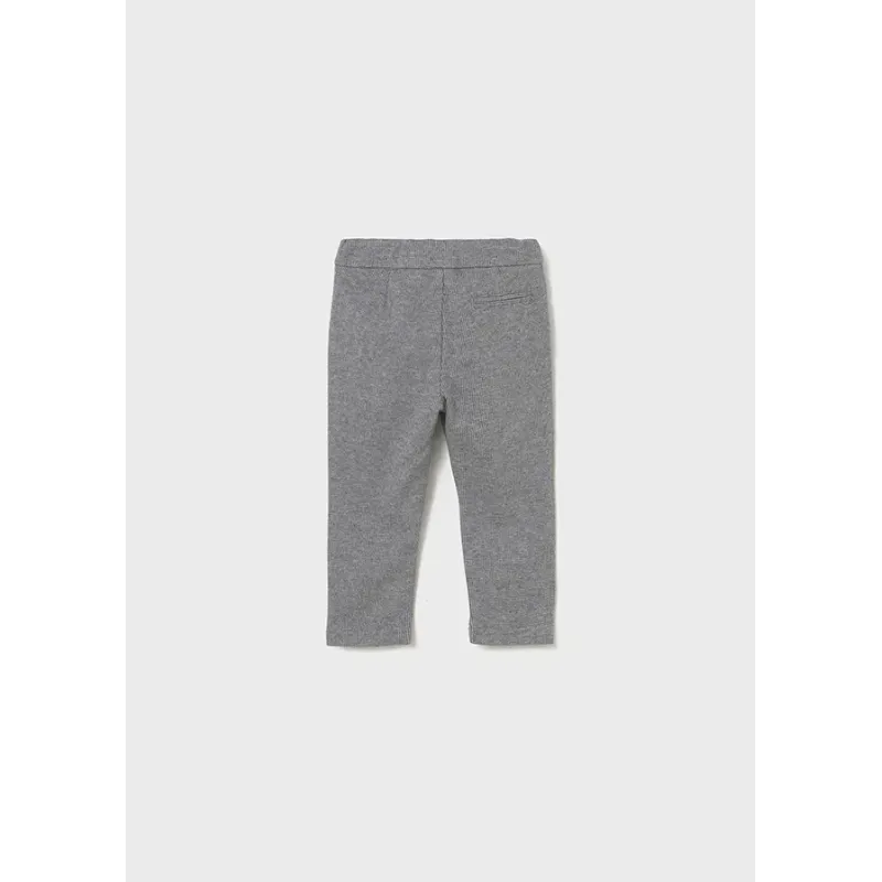 Długie spodnie typu jogger dla niemowlęcia chłopca, luźniejsze w górnej części i zwężane ku dołowi. Idealne do sportowych stylizacji, które odzwierciedlają modę uliczną. Elastyczny pas ze sznurkiem do regulacji. Dół z elastyczną gumką.