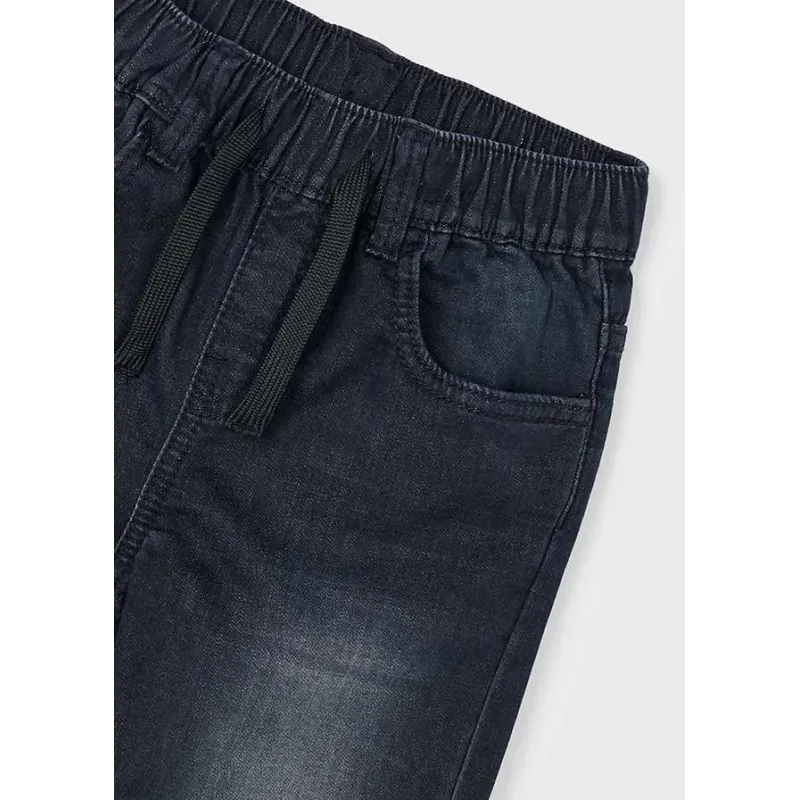 Jeansowe spodnie wiązane typu jogger dla chłopca. Skład: 82% Bawełna, 17% Poliester, 1% Elastan.