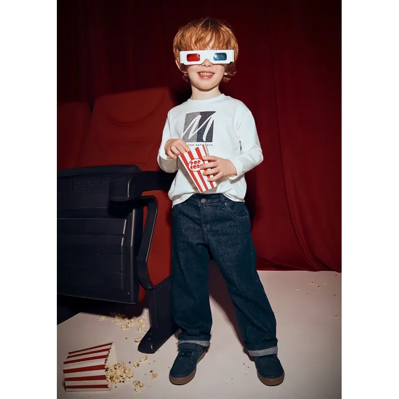 Spodnie dla chłopca o kroju dopasowanym, należące do naszej linii, która doskonale dopasowuje się do sylwetki. Wykonane z dodatkiem bawełny organicznej. Pas z regulowaną gumą i zapięciem na suwak i guzik. Skład: 98% Bawełna, 2% Elastan.