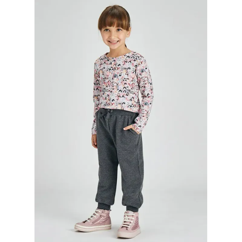 Długie spodnie typu jogger dla dziewczynki, luźniejsze w górnej części i zwężane ku dołowi. Idealne do sportowych stylizacji, które odzwierciedlają modę uliczną. Elastyczna gumka w pasie dla lepszego dopasowania. Dół z elastyczną gumką dla leps