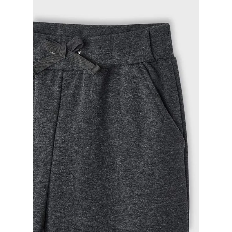 Długie spodnie typu jogger dla dziewczynki, luźniejsze w górnej części i zwężane ku dołowi. Idealne do sportowych stylizacji, które odzwierciedlają modę uliczną. Elastyczna gumka w pasie dla lepszego dopasowania. Dół z elastyczną gumką.