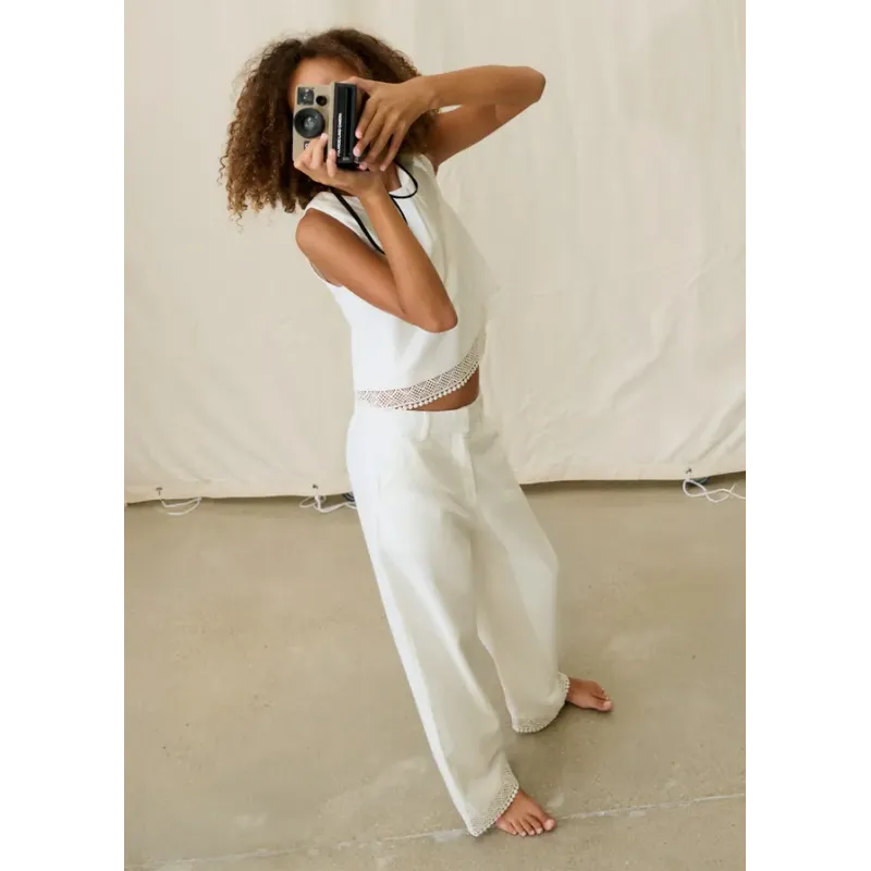Luźne spodnie z prostą nogawką dla dziewczynki. Skład: 95% Bawełna, 5% Poliester.