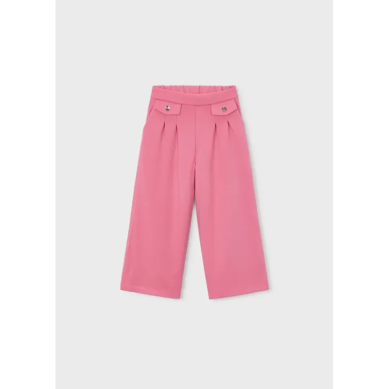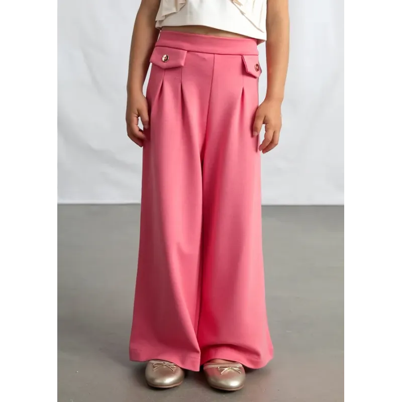 Długie spodnie z szerokimi nogawkami dla dziewczynki. Skład: 62% Wiskoza, 33% Poliamid, 5% Elastan.