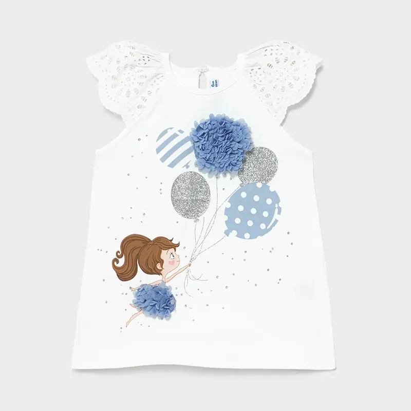 Sukienka z krótkim rękawem z falbanką dla dziewczynki Baby. Okrągły dekolt. Zapięcie na zamek na plecach. Lekki i elastyczny materiał zapewniający codzienną wygodę. Model z nadrukiem. Skład: 100% Bawełna