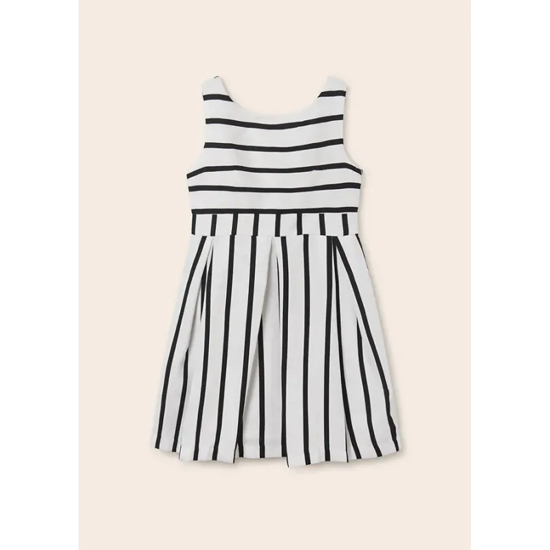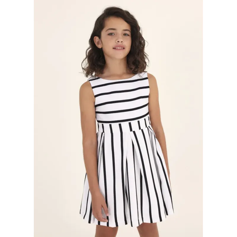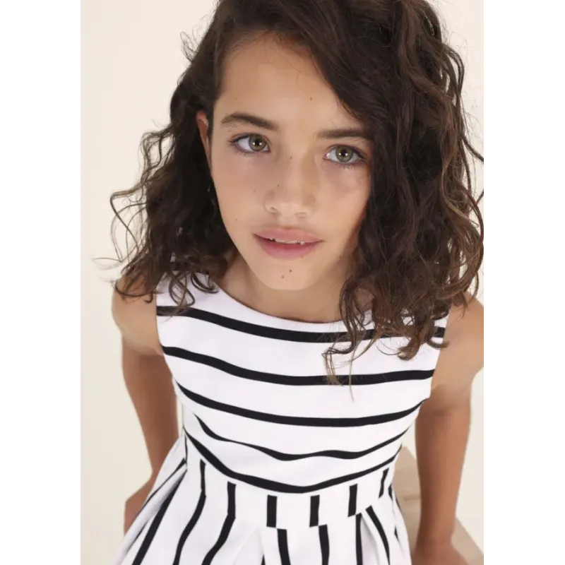 Elegancka sukienka na grubych ramiączkach dla dziewczynki. Okrągły dekolt. Model dopasowany w pasie. Zapięcie na plecach z ukrytym suwakiem. Delikatna i elastyczna bawełna. Model z podszewką. Model z dekoracyjną falbaną na dole ubranka i kolorowym paskiem