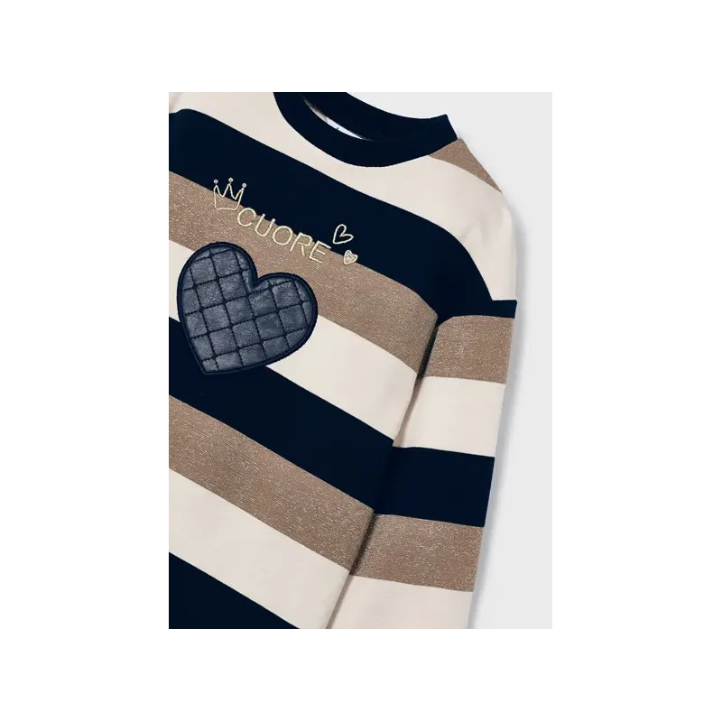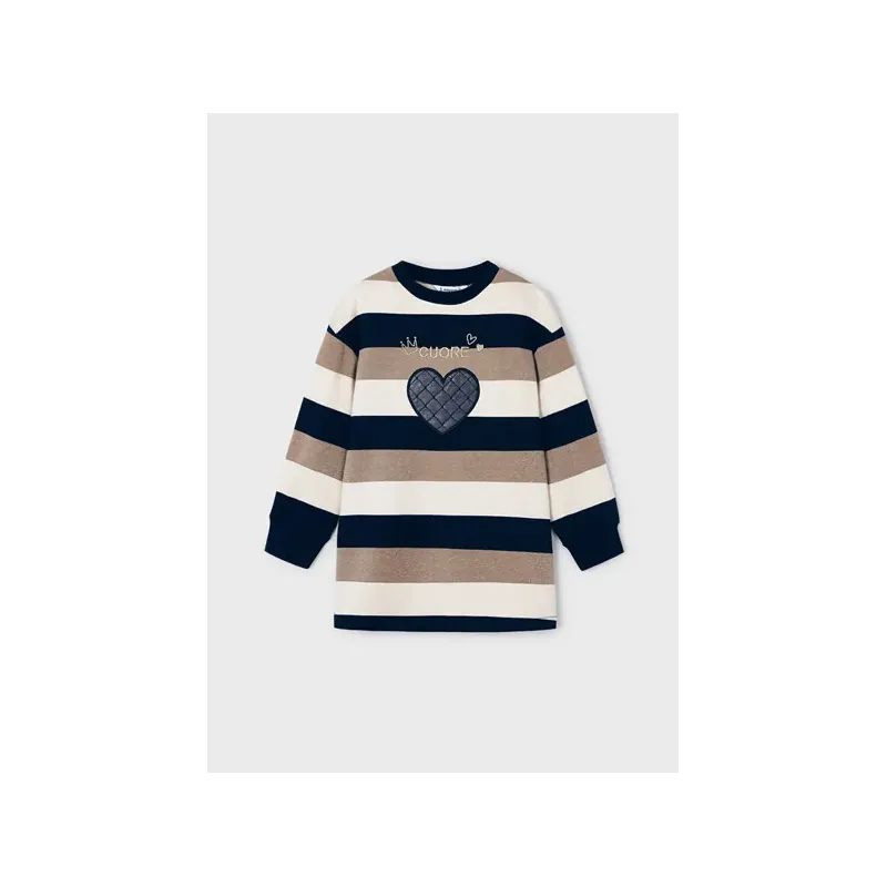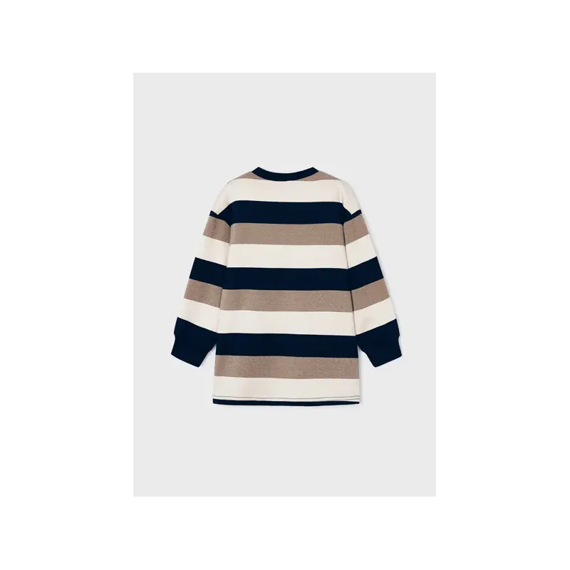 Sukienka z długim rękawem dla dziewczynki. Okrągły dekolt. Delikatna i elastyczna bawełna. Ozdoby: grafika. Motyw w paski.