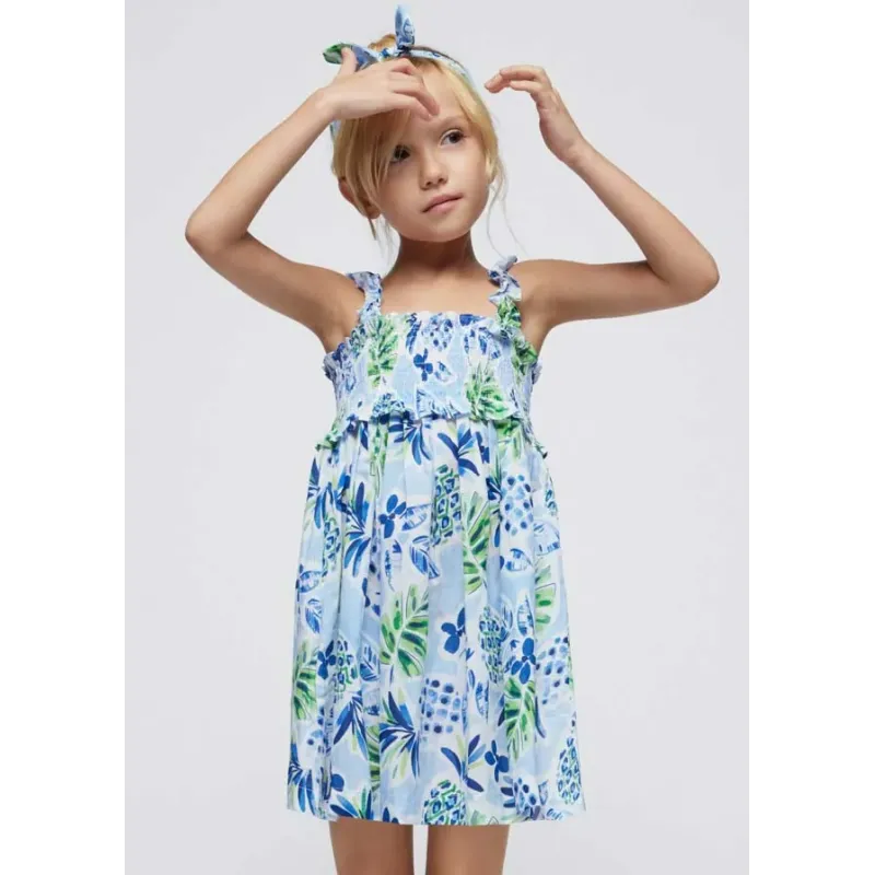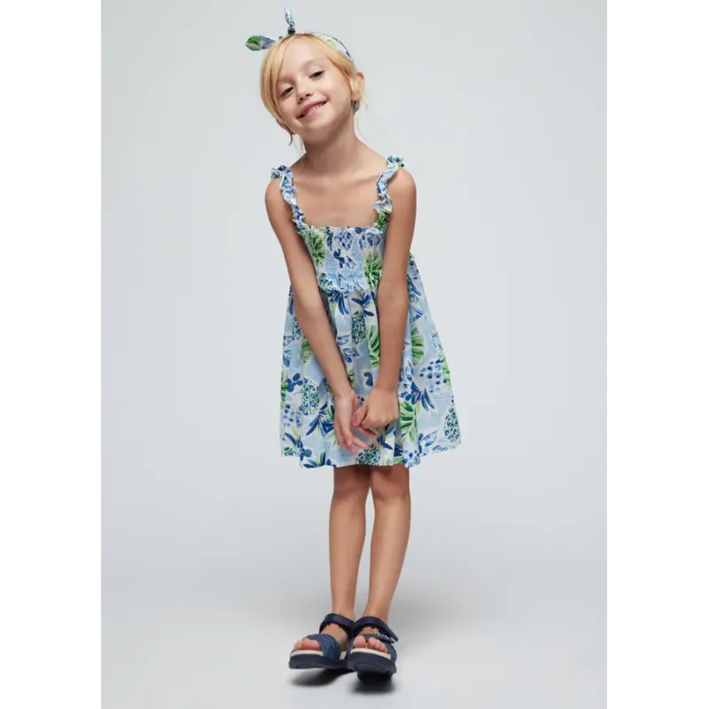 Sukienka z długim rękawem dla dziewczynki. Okrągły dekolt. Zapięcie na małe zatrzaski na plecach, które ułatwiają założenie ubranka. Delikatna i elastyczna bawełna. Dół wykończony falbanką. Model z haftami. Skład: 48% Bawełna, 47% Poliester, 5% Elastan.