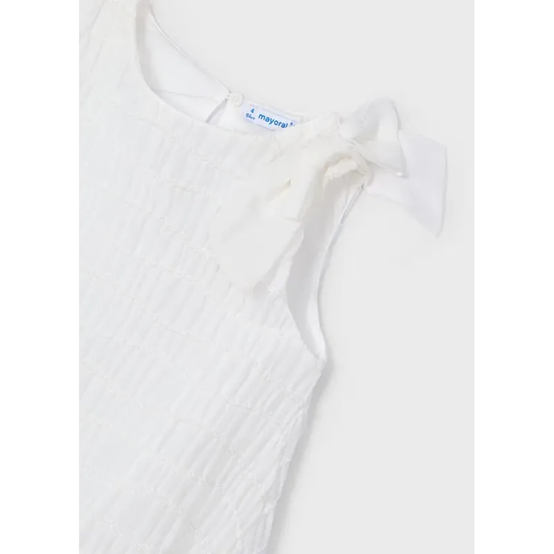 Sukienka bez rękawków dla dziewczynki. Okrągły dekolt. Model z haftami. Artykuł wykonany ze 100% bawełny.