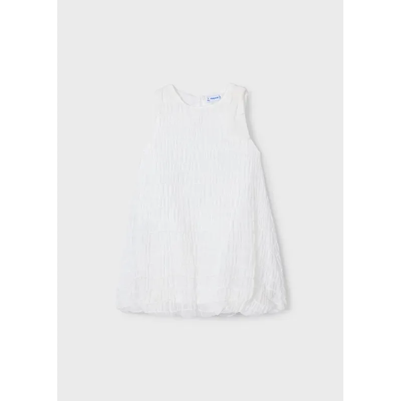 Sukienka z długim rękawem dla dziewczynki. Okrągły dekolt. Elastyczny ściągacz w rękawie. Miękka i zwiewna tkanina. Sukienka plisowana. Model gładki. Skład: 100% Poliester.