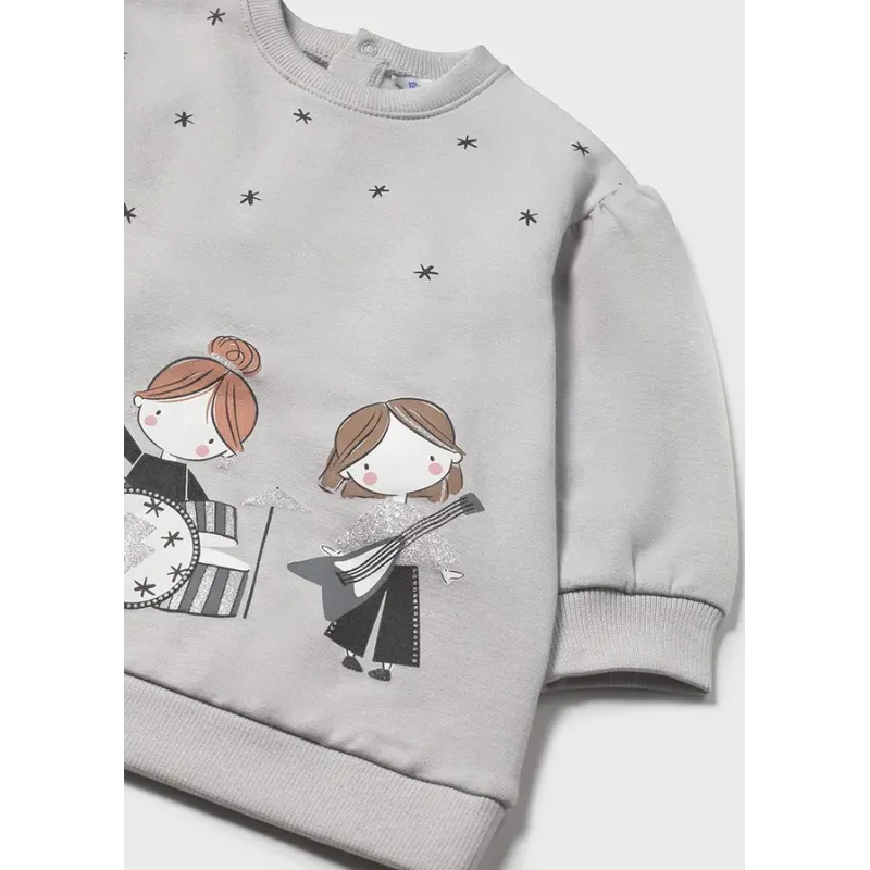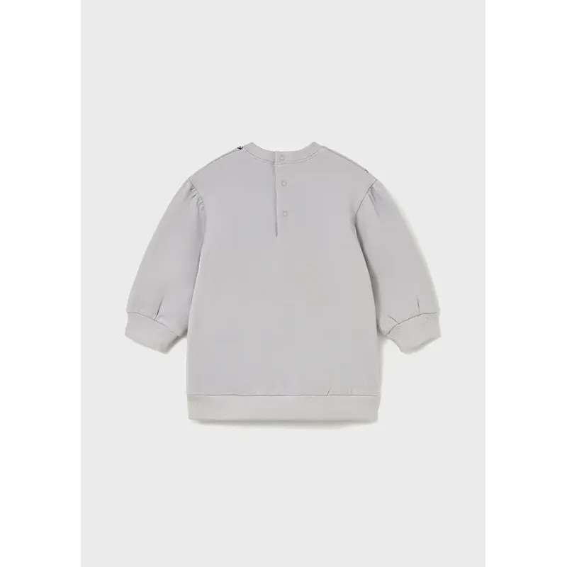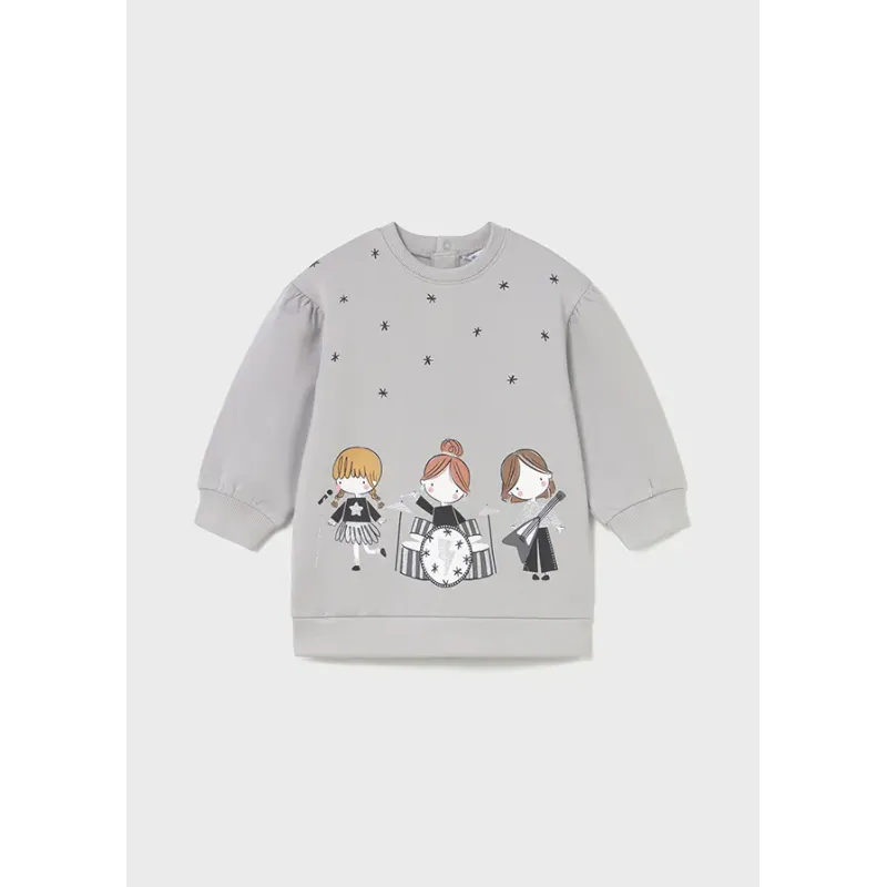 Sukienka z długim rękawem dla dziewczynki. Okrągły dekolt. Zapięcie na zatrzaski na plecach dla łatwiejszego zakładania ubranka. Przyjemny materiał. Ozdoby: grafika na przodzie ubranka. Skład: 95% Bawełna, 5% Elastan.