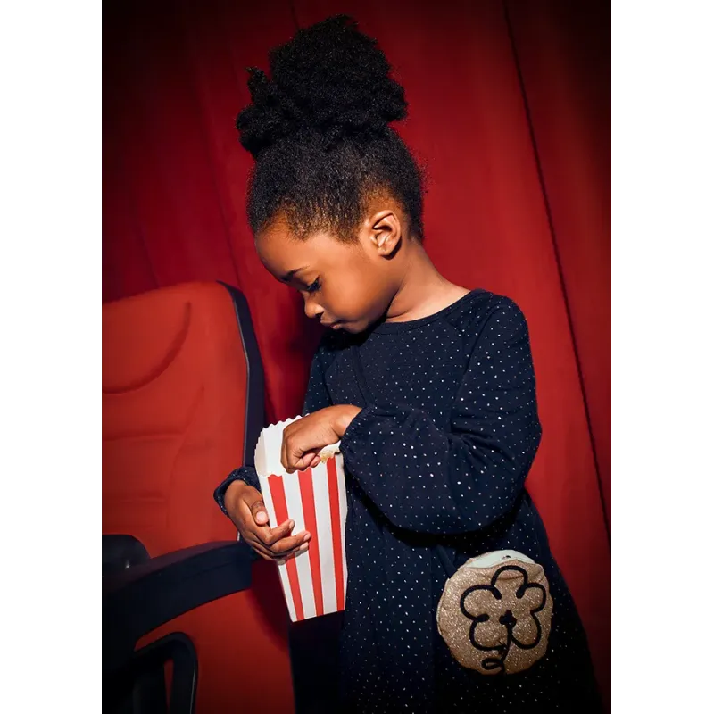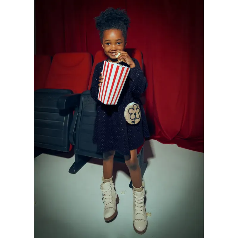 Rozkloszowana sukienka z krótkim rękawkiem w zestawie z torebką dla dziewczynki. Skład: 100% bawełna.