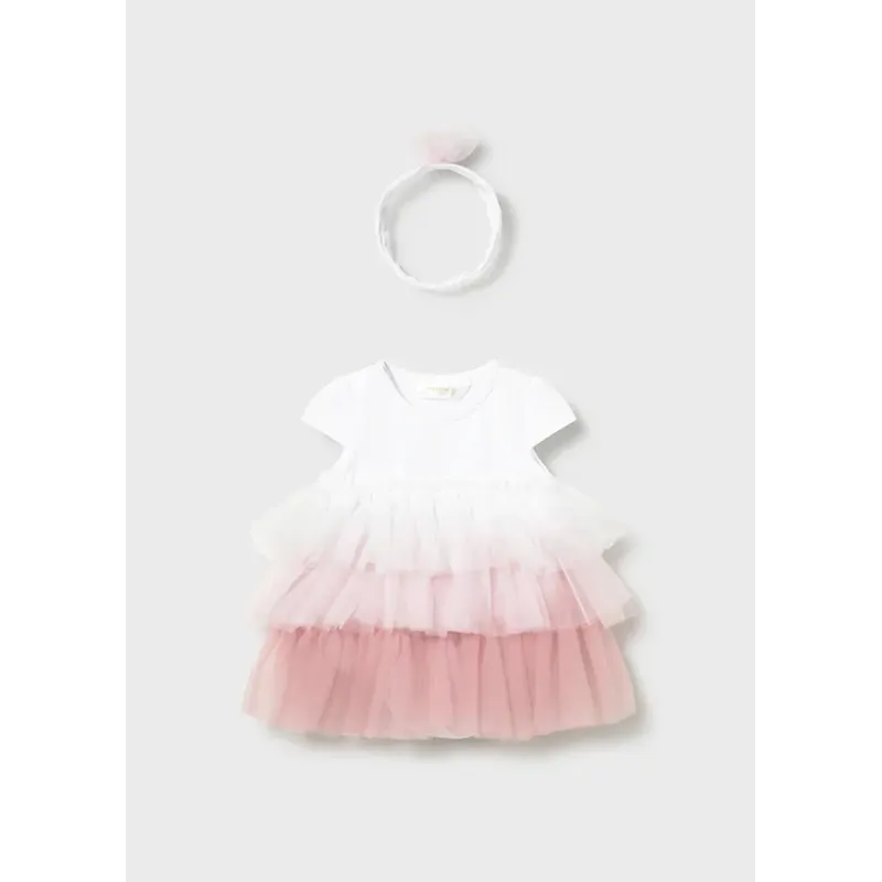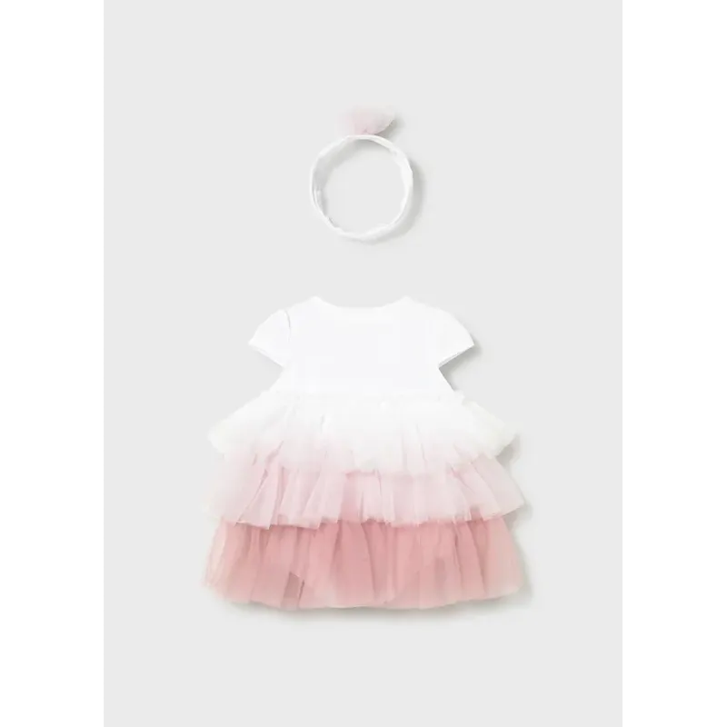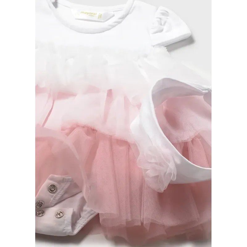 Tiulowa sukienka łączona z body dla dziewczynki. Skład: 70% Poliester, 27% Bawełna, 3% Elastan.