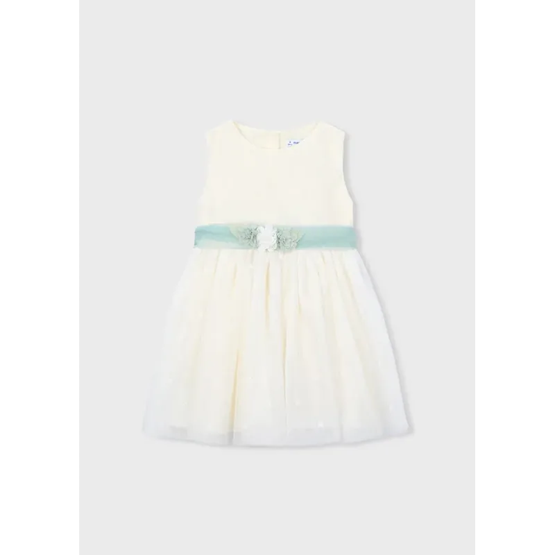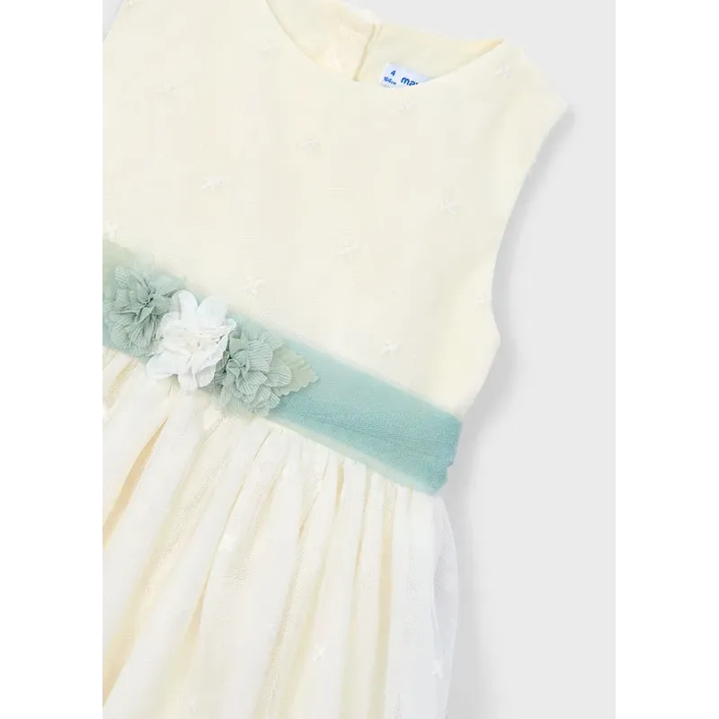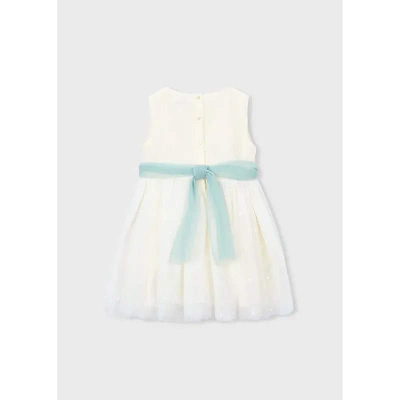 Tiulowa sukienka z haftem i paskiem dla dziewczynki. Skład: 100% Poliester.