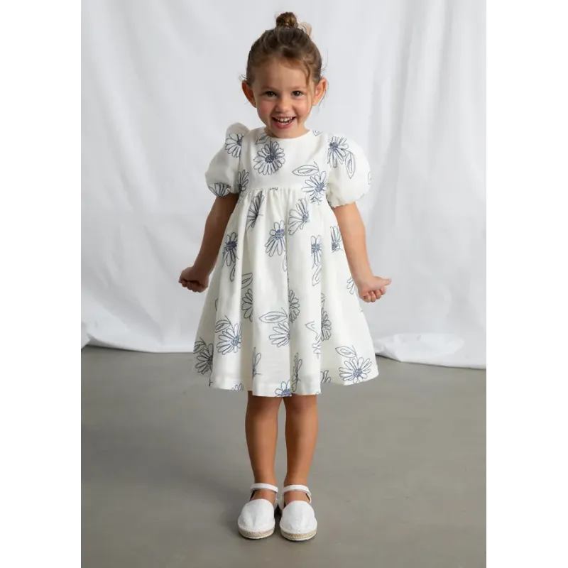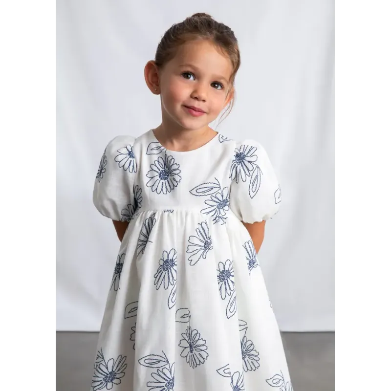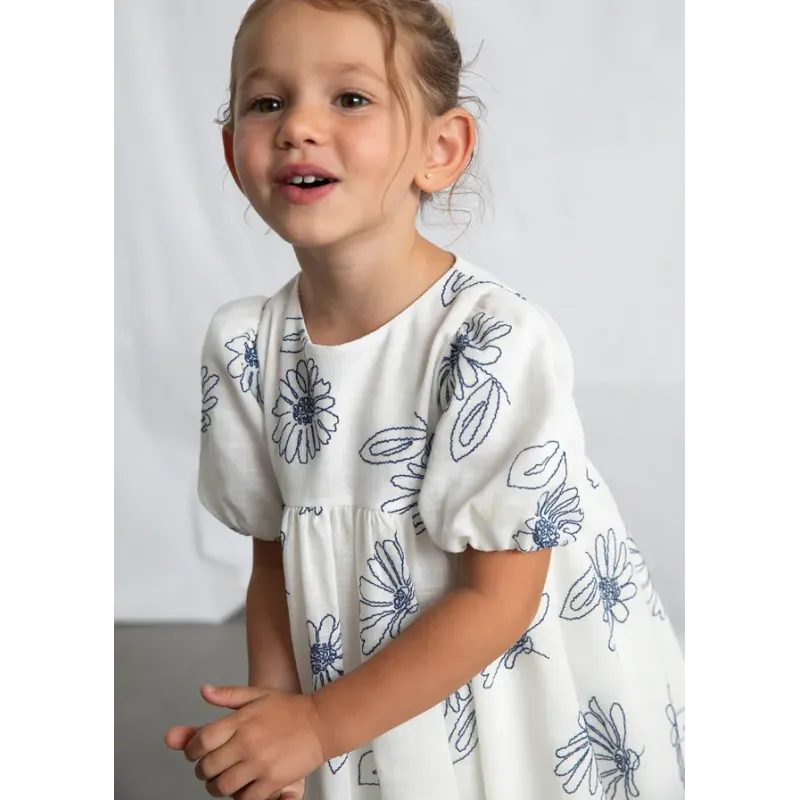 Rozkloszowana sukienka z haftami dla dziewczynki. Skład: 50% Bawełna, 50% Poliester.