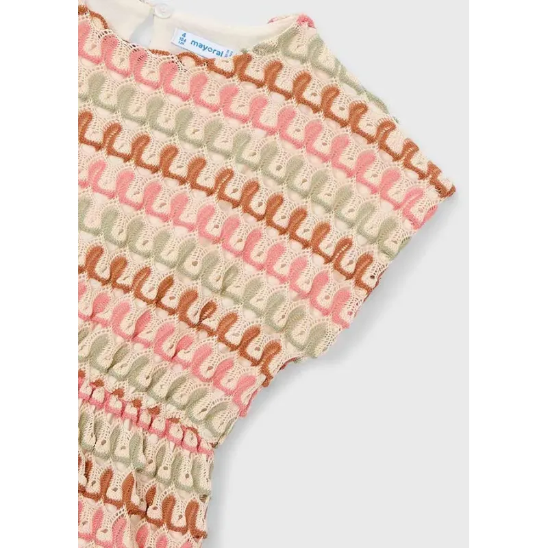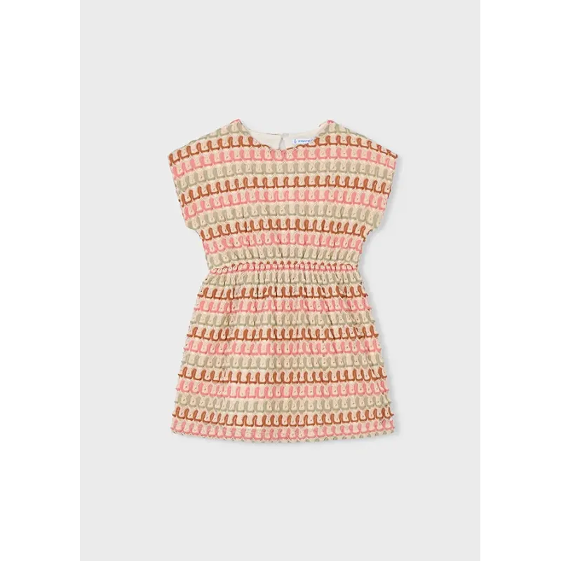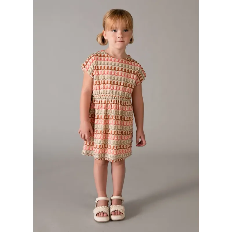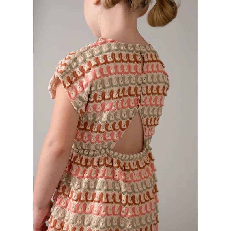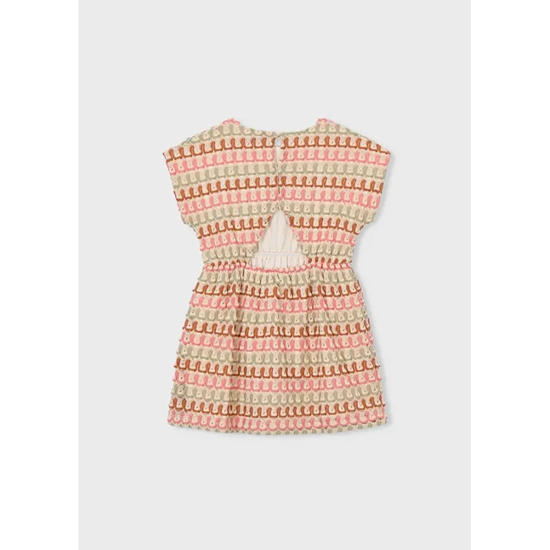 Wzorzysta sukienka z wyciętymi plecami dla dziewczynki. Skład: 100% Poliester.