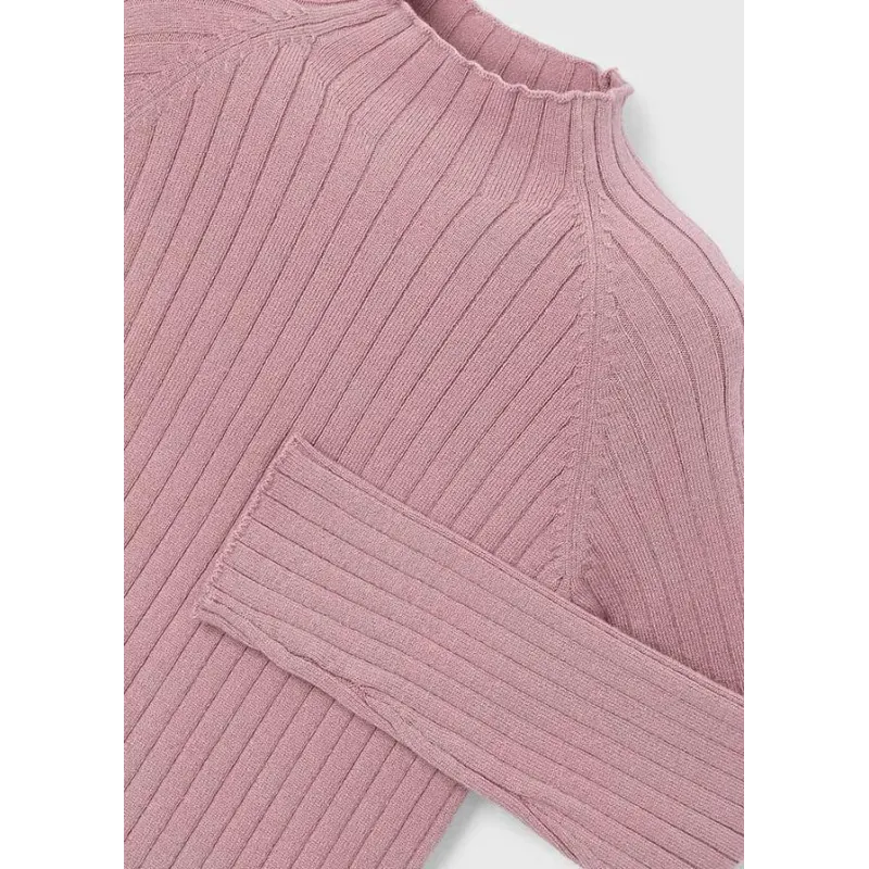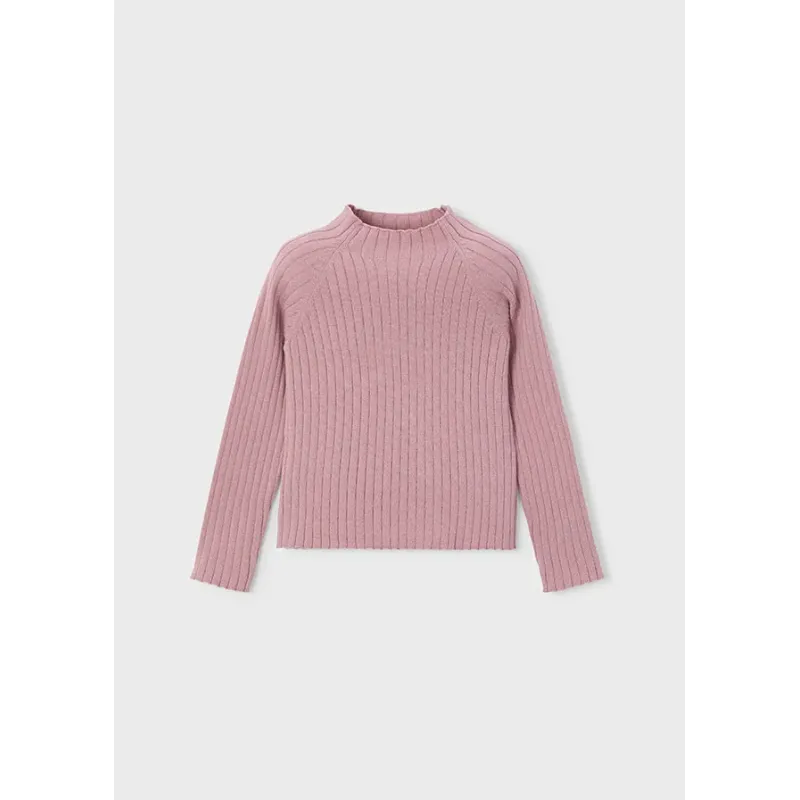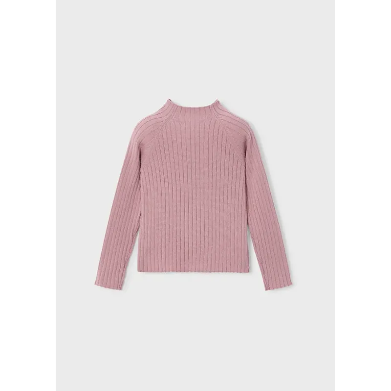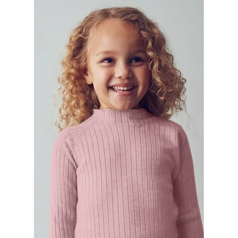 Sweter z długim rękawem dla dziewczynki. Okrągły dekolt z półgolfem. Wygodna, prążkowana dzianina. Model gładki. Skład: 52% Wiskoza, 26% Poliester, 22% Poliamid.