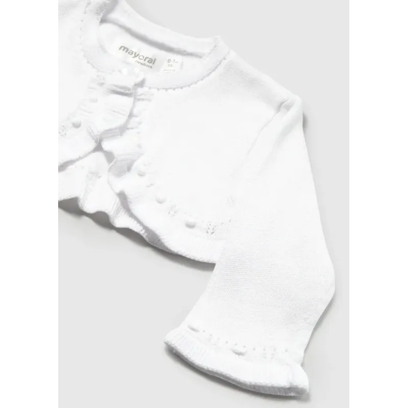Rozpinany sweterek z dekoracyjną falbanką dla dziewczynki. Skład: 49% Wiskoza, 25% Bawełna, 25% Akry, 1% Poliamid.
