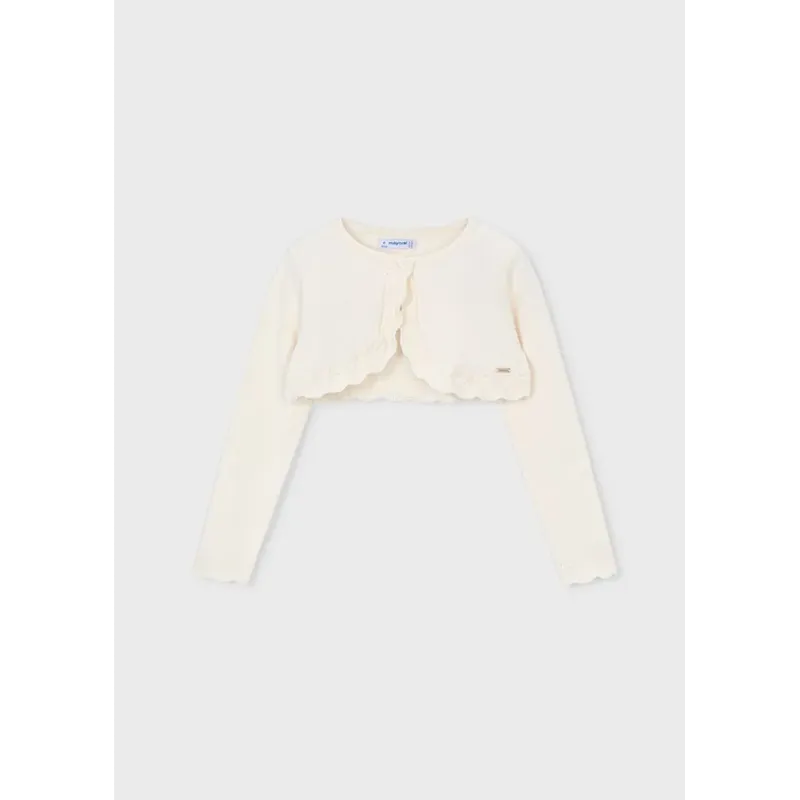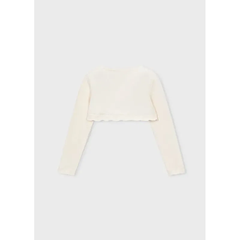 Krótki sweterek typu bolerko dla dziewczynki. Skład: 80% Bawełna, 17% Poliamid, 3% Elastan.