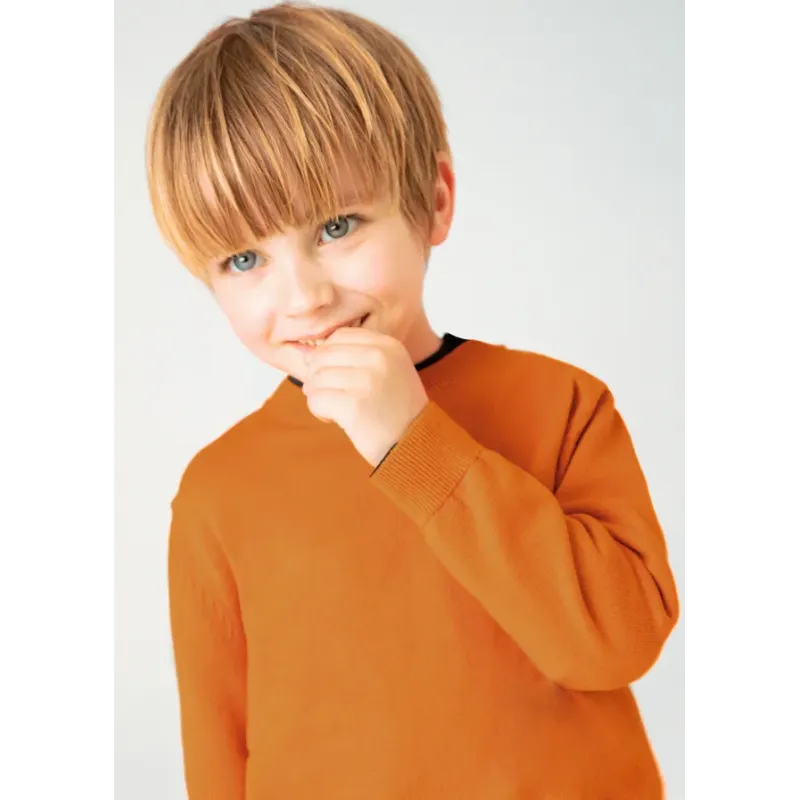 Sweter z długim rękawem dla chłopca. Okrągły dekolt. Trykotowa dzianina, delikatna i przyjemna w dotyku. Skład: 100% Bawełna