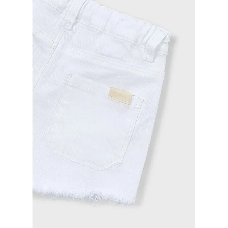 Spodnie typu szorty dla dziewczynki. Zapięcie na suwak i guziki. Delikatna i elastyczna bawełna. Zarówno przednie jak i tylne kieszenie są funkcjonalne. Perforowana bawełniana tkanina jeansowa. Artykuł wykonany ze 100% bawełny.