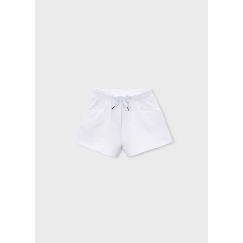Spodnie typu szorty dla dziewczynki. Zapięcie na suwak i guziki. Delikatna i elastyczna bawełna. W pasie znajduje się wyciągany pasek. Zarówno przednie jak i tylne kieszenie są funkcjonalne.